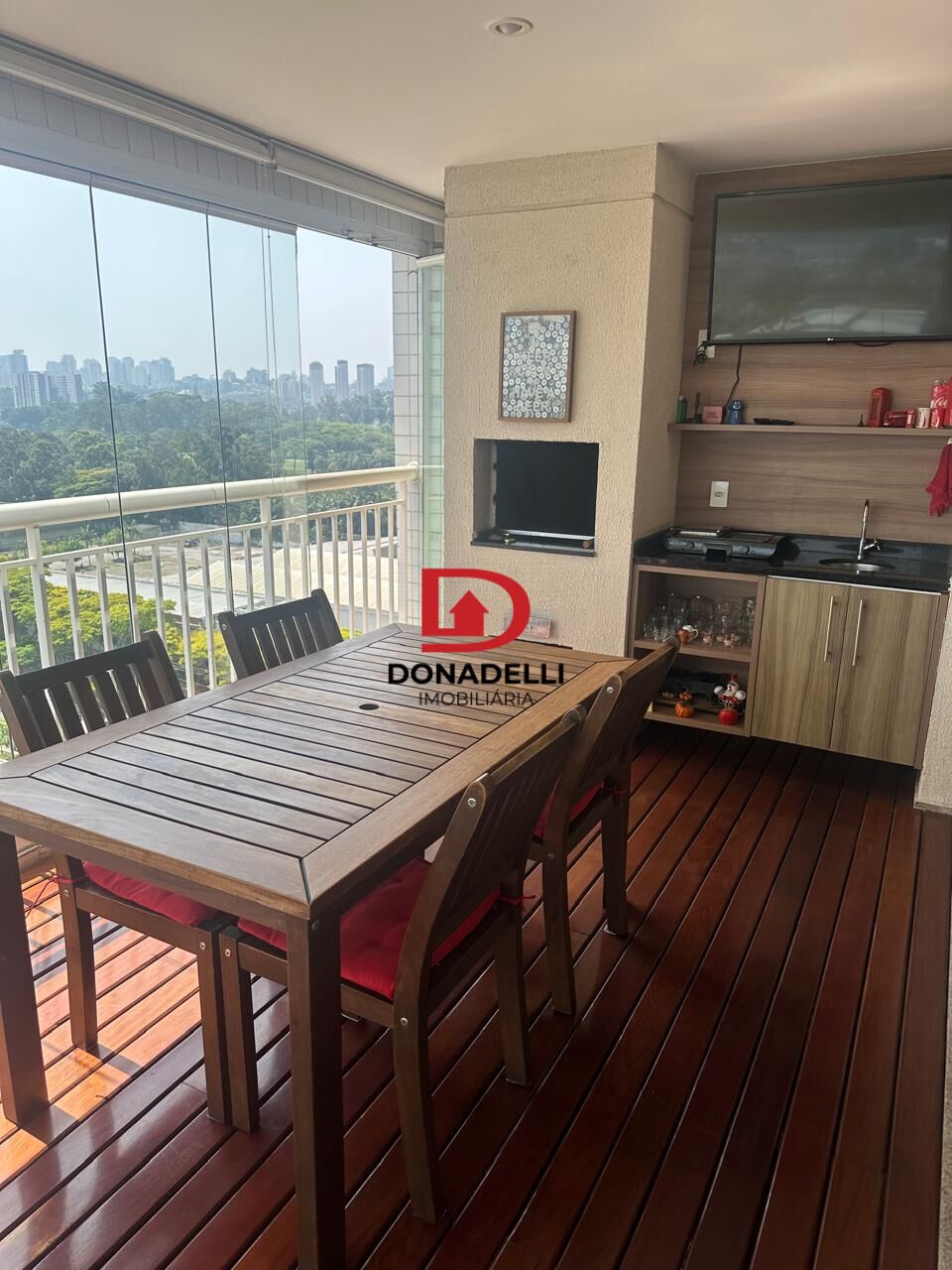 2 suítes, com sala ampliada, ( 1 dormitório revertido para ampliação da sala), 3 banheiros e varanda gourmet.