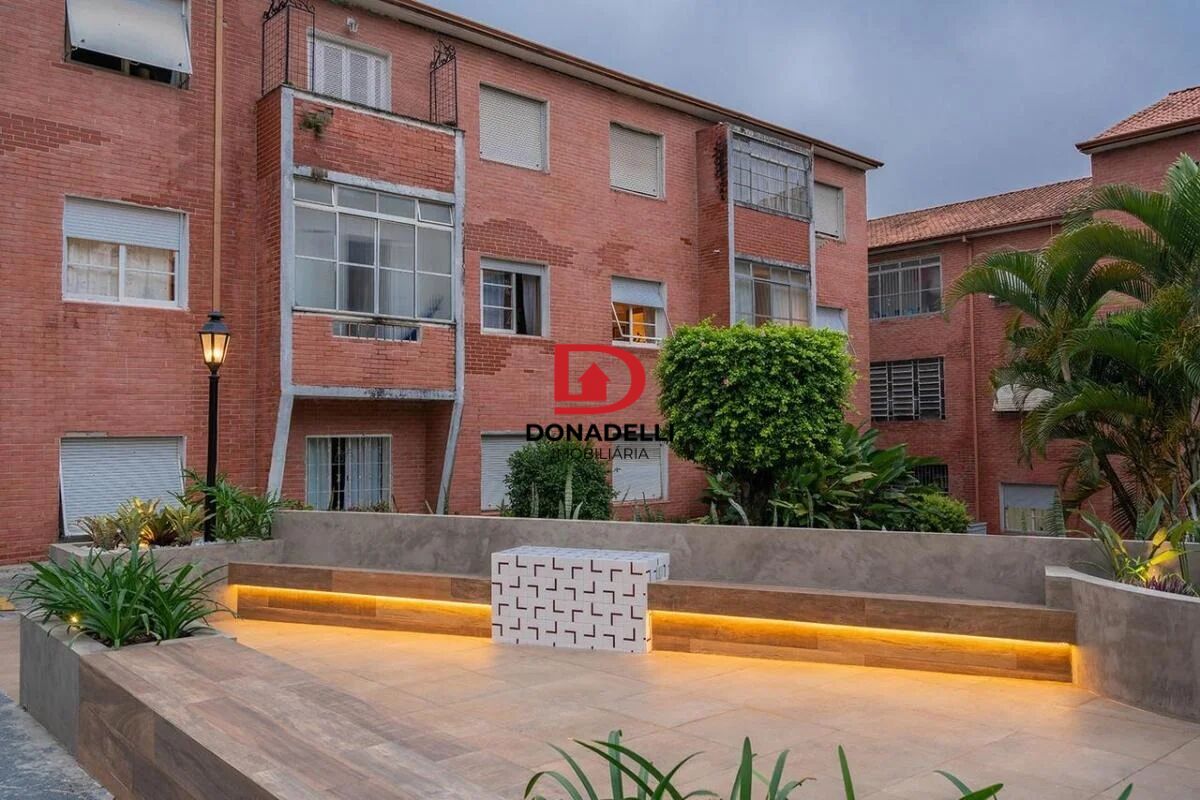 Condomínio com jardim, playground, portaria 24 horas, quadra esportiva, salão de festas.