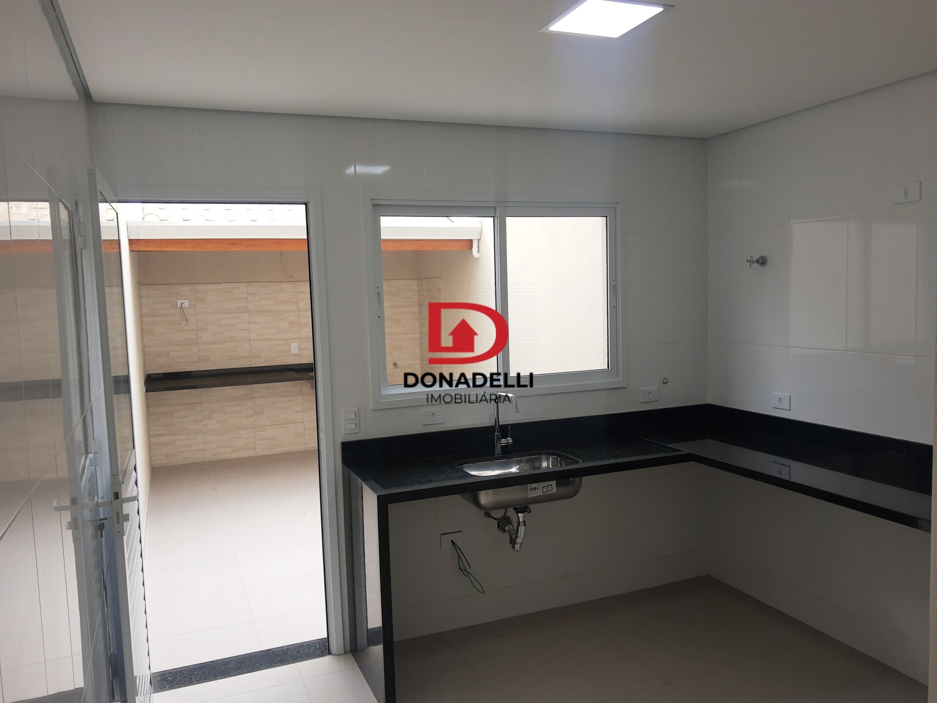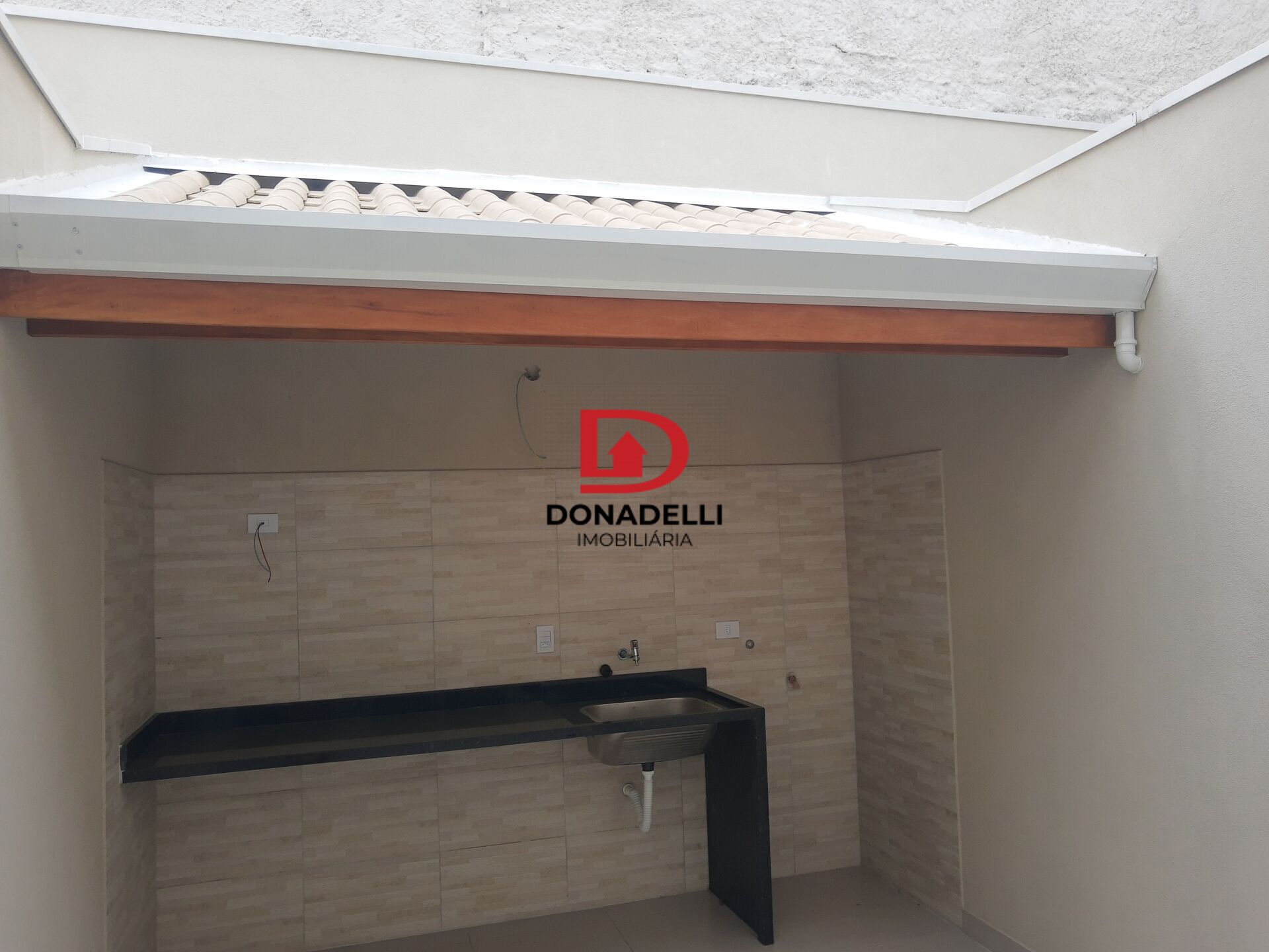 churrasqueira coberta com calha embutida em todo sobrado, escada e pias de banheiros todos em Travertino!