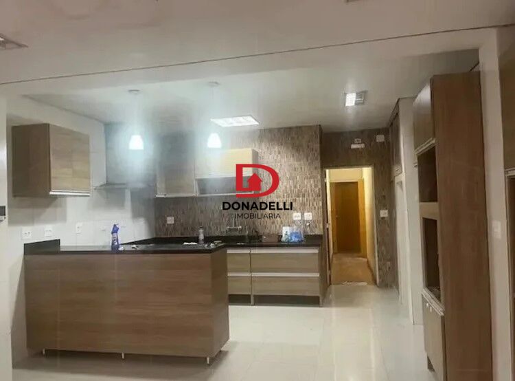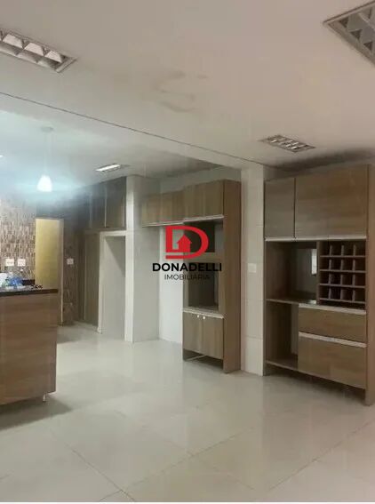 Cozinha espaçosa, repleta de armários modernos. Salão com aproximadamente 40 m² nos fundos.