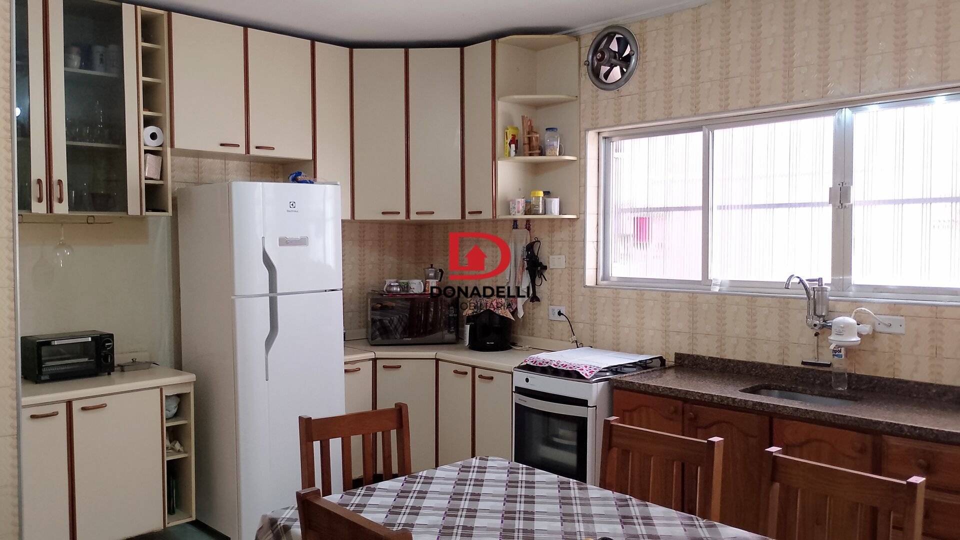 Sala e cozinha grandes e bem iluminadas. Lavanderia. Corredor lateral.