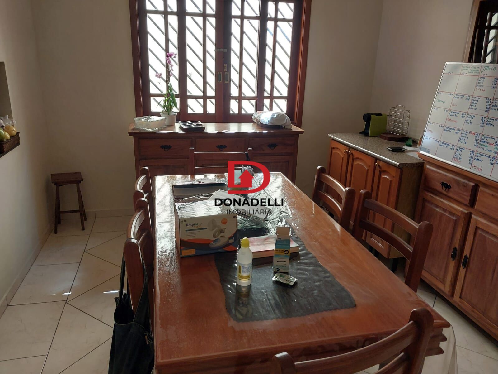 sala de jantar, escada com corrimão, cozinha, total de 4 banheiros, área de serviço. Quintal.